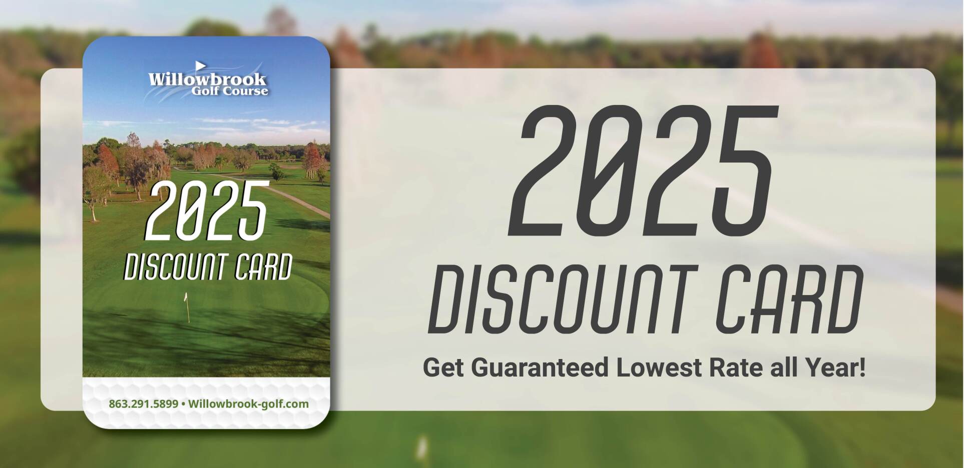 The 2025 Willowbrook Discount Card is here! Purchase yours in the golf shop today and start saving on rounds, merchandise and more!